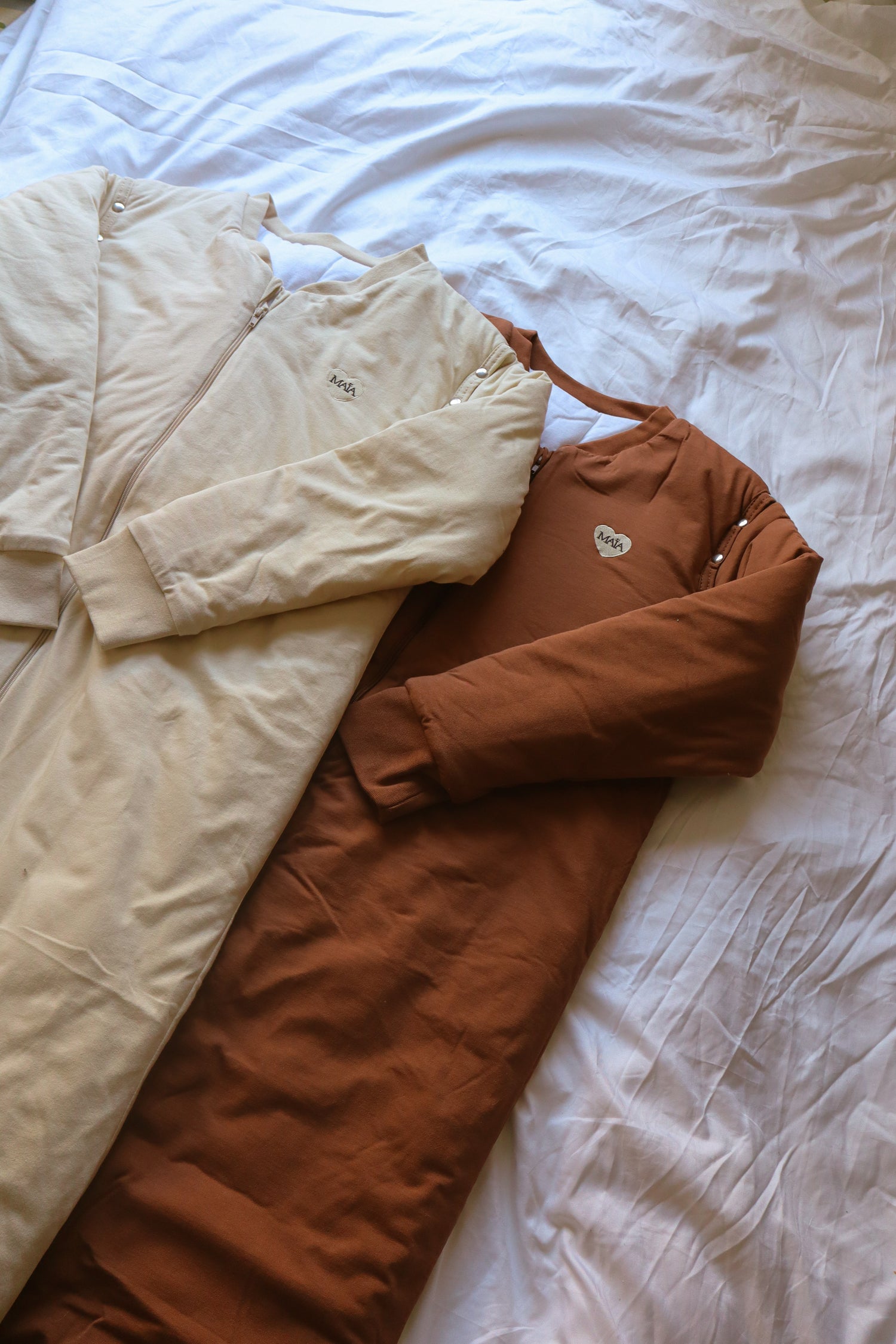 Des gigoteuses épaisses et confortables, spécialement conçues pour les mamans en post-partum. Liberté de mouvement, chaleur douce, matières certifiées et fabrication européenne.